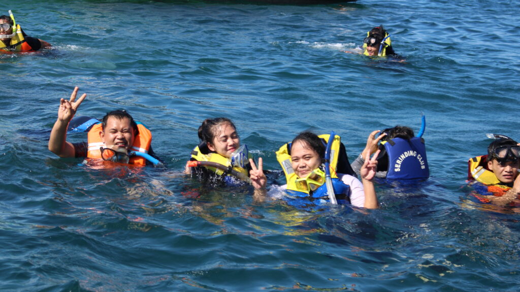• Snorkeling alat lengkap + guide lokal